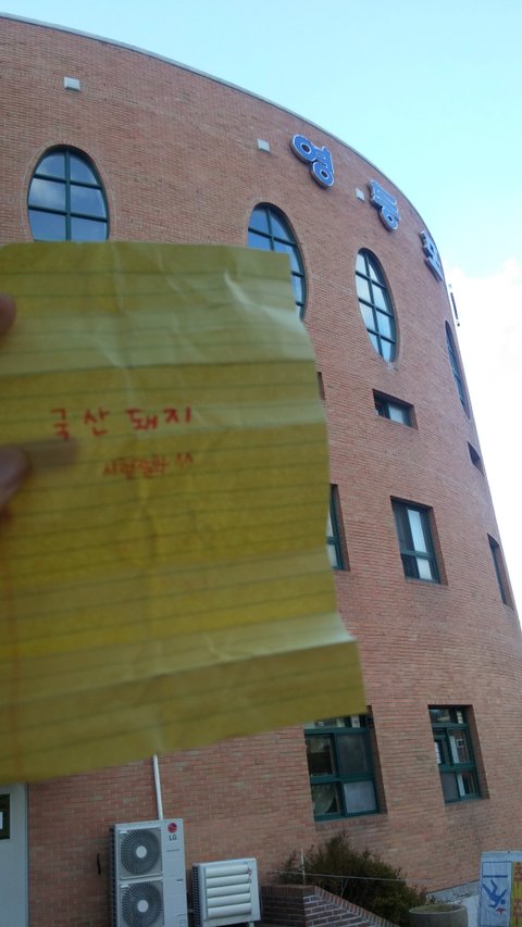 (초점이 잘 안잡히긴 했지만 '국산돼지 시험잘봐^^'라고 적혀있어요)