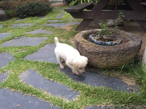 이제 한달된 강아지로 똥은 무조건 가리느라 잠시 목줄을