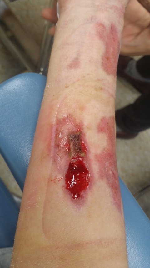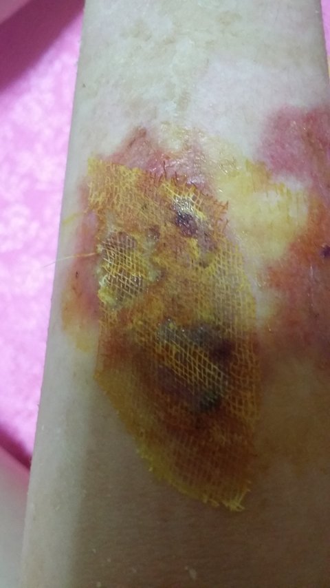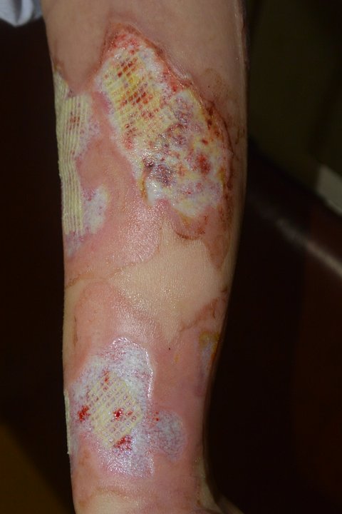 오른쪽팔은 나아지는 것 같으면서도 고름이 생겨 다시 원점이 되고를 반복하였고 차도가 보이지 않아 치료받은지 3개월정도 됐을때 화상전문병원으로 옮겼어요.