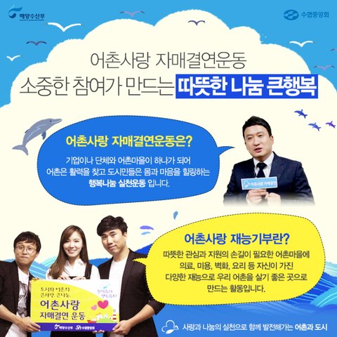 홈페이지 보니까 재능기부 관련해서 어촌지역에 자원봉사 개념으로 갔다 오는 것도 좋을듯 하고