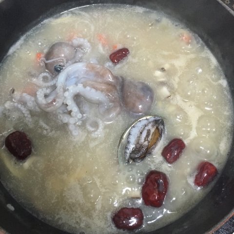 입안에서 톡톡 터지는 녹두,,육수는 사골국 사용..낙지 전복 밤 대추 수삼 표고버섯 당근 마늘 쪽파