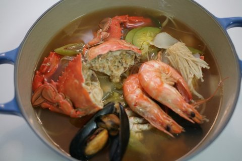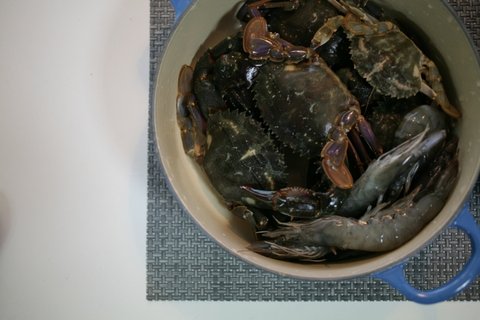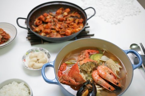 돌게와 붕장어는 낚시가서 잡은거 사용