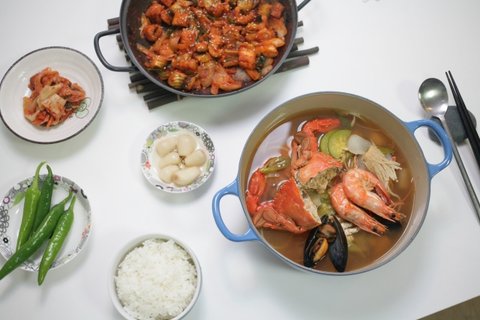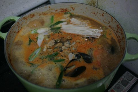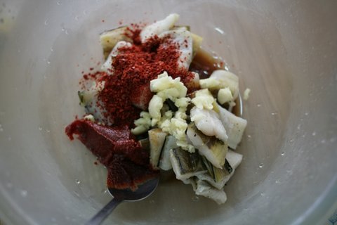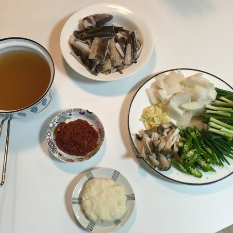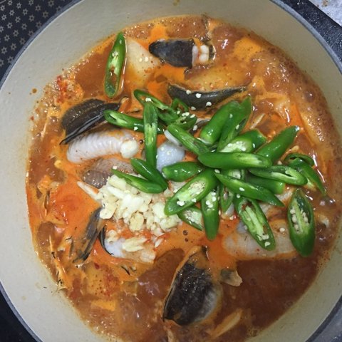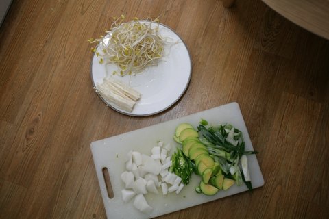 육수는 대파 애호박 무 멸치 다시마 청양고추 팔팔 끓여 만들었습니다.