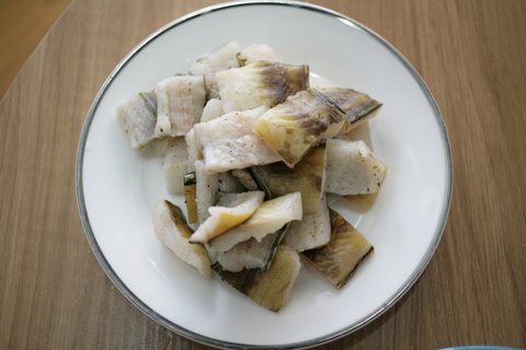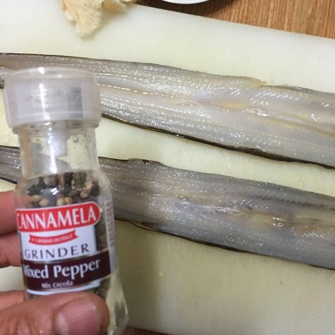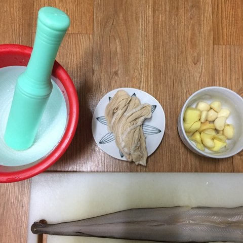 살짝 반건조시킨 장어에 통후추 소금약간 그리고 마늘과생강 다져서 삼베에 넣고
