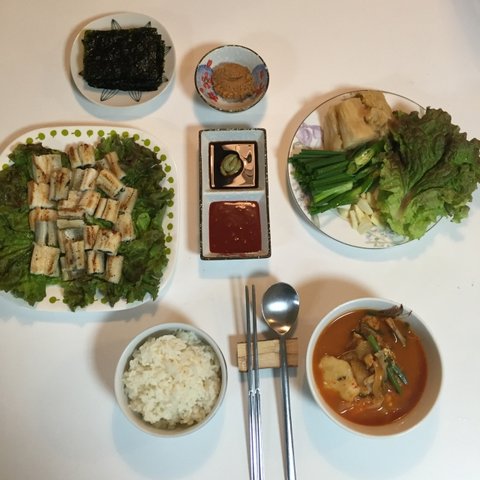 개인적으로 가끔 된장찌개 끓이고 무생채나 콩나물무침해서 비벼 먹는거 강추합니다.