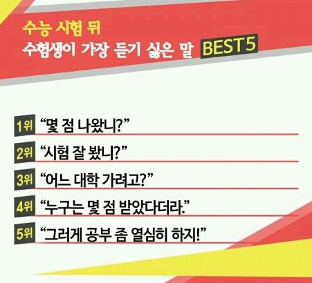 수능 시험 뒤 수험생이 가장 듣기 싫은 말