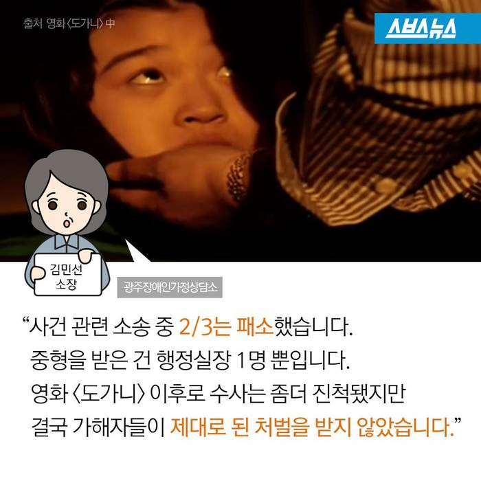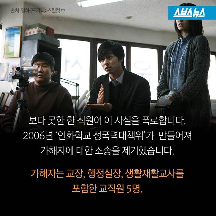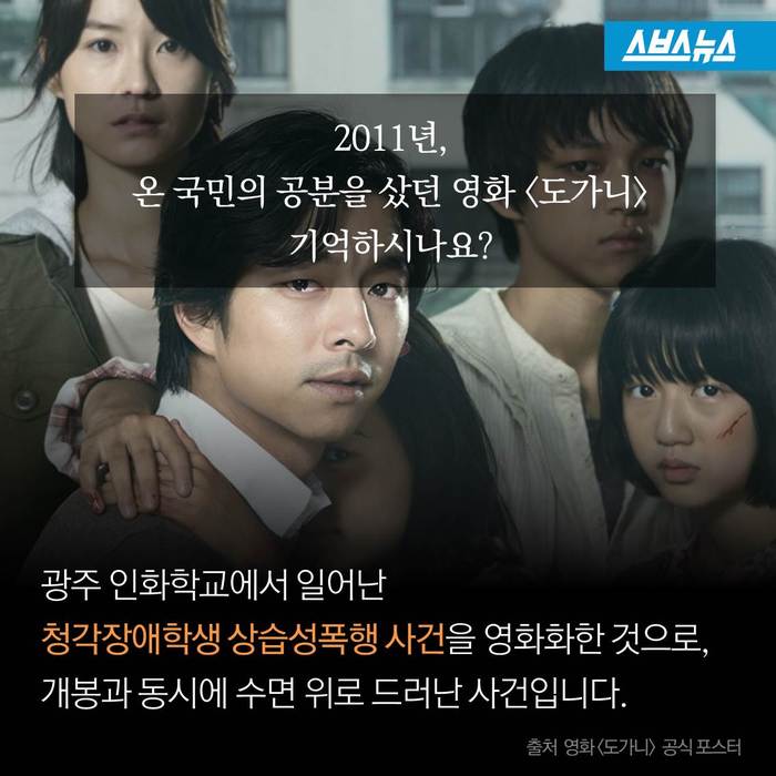 *도가니 사건: 청각장애인 교육시설인 인화학교에서, 2000년부터 5년에 걸쳐 교장을 비롯한 교직원들에 의해 7세부터 22세까지의 남녀 장애학생들에게 실제로 자행된 비인간적인 아동학대+집단 아동 성폭행+그 외 차마 열거하기 힘든 온갖 악행들을 통칭하는 사건. 이 사건을 소재로 한 소설, 영화 《도가니》의 영향으로 "도가니 사건"이라고도 불린다.