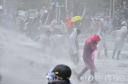 14일 서울 광화문 일대에서 진행 중인 '민중총궐기' 집회에서 시위대와 경찰이 격렬하게 충돌한 가운데 한 노인 참가자가 큰 부상을 당한 것으로 전해졌다.