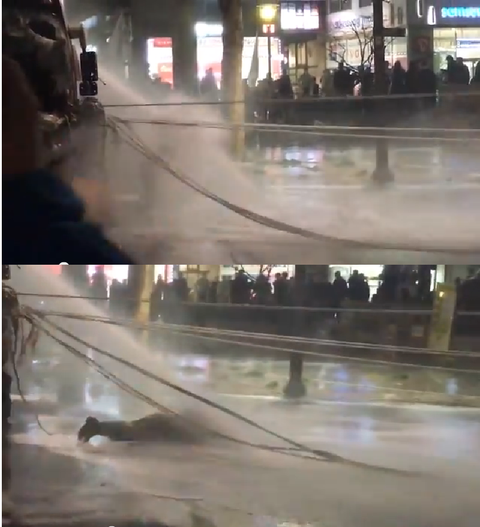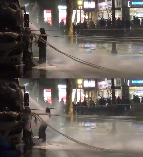안면에 물대포발사해서 사람이 종이인형처럼 쓰러짐