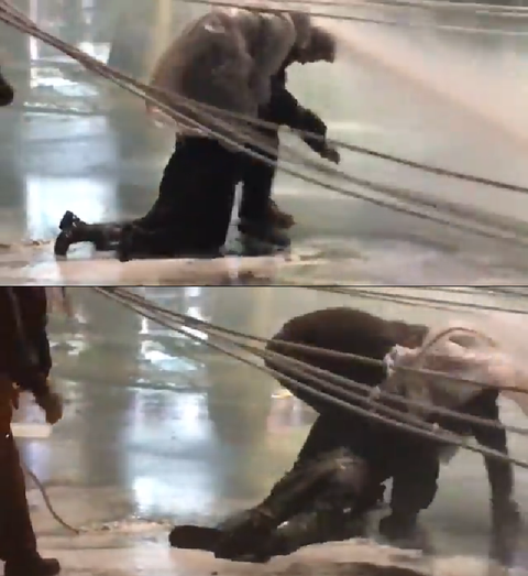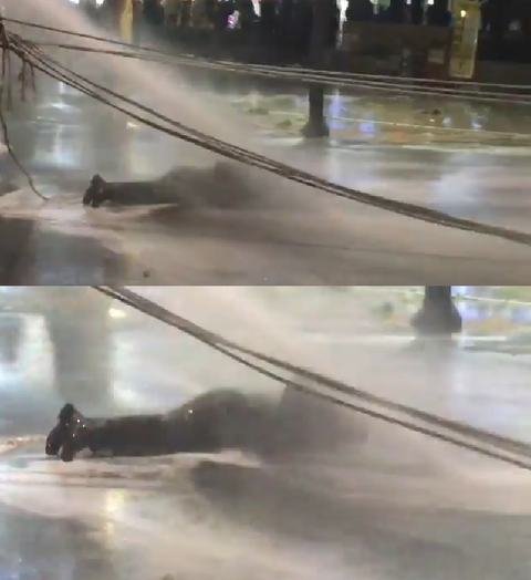 물대포맞고 뇌진탕으로 실신한 할아버지한테 계속 물대포쏘는 영상