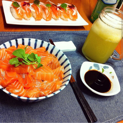 마트에서 연어 원플원으로 싸게 득템해서 해먹은 연어덮밥 연어초밥이에요! 연어덮밥 안에는 데리야키 소스에 졸인 양파소스가 들어있어욥! 달달 짭쪼름하니 꿀맛!