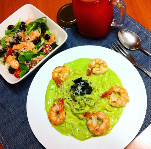 시금치크림파스타랑 수박쥬스에요! 시금치를 갈아서 소스만들때 같이 넣었어요 색이 완전 곱지요? 사실 시금치 맛은 안나요! 색을 내려고 한거라서 그래도 모두가 다 아는 시금치 특유의 풀냄새는 납니다! 아! 연어샐러드 드레싱은 레몬즙이랑 올리브오일 설탕 넣어서 섞어서 끼얹었어요! 상콤해염! 근데..구운 연어의 비린내를 잡지못했다는것이..(사실 못참고 연어 다 꺼내놓고 먹음요..ㅠㅠㅠㅠㅠㅠㅠ)