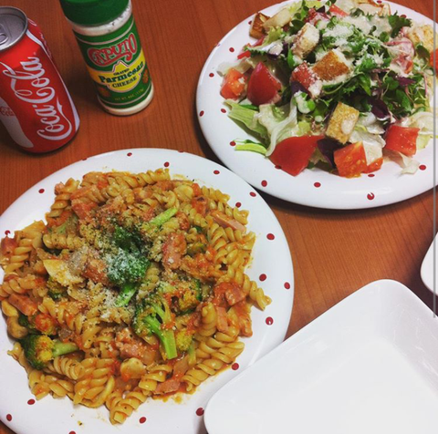 토마토 처리하려고 토마토소스 만든 다음 해먹었던 로제푸실리파스타와 러스크샐러드에욥!