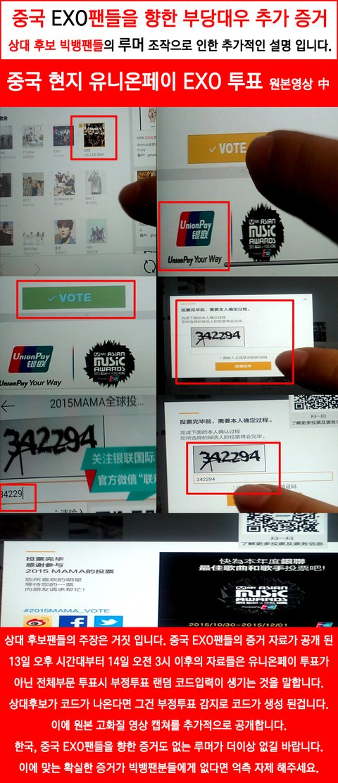 중국현지에서 EXO를 투표하려고 하면 보안코드를 계속해서 입력하여야했음.