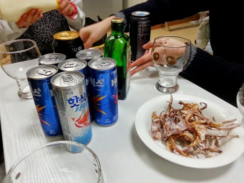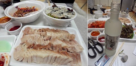안동소주를 득템합니다. 다들 자연스럽게 우리집으로 모입니다. 안주는 보쌈입니다.
