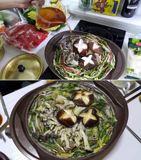 고급진 밀뫼유나베를 해먹습니다. 3번 재탕하니깐 배가 불러옵니다. 술안주로 제격입니다.
