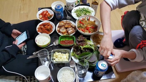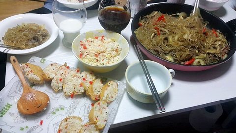윗집 친구네 다시 가봅니다. 푸짐합니다. 잡채까지 등장합니다.