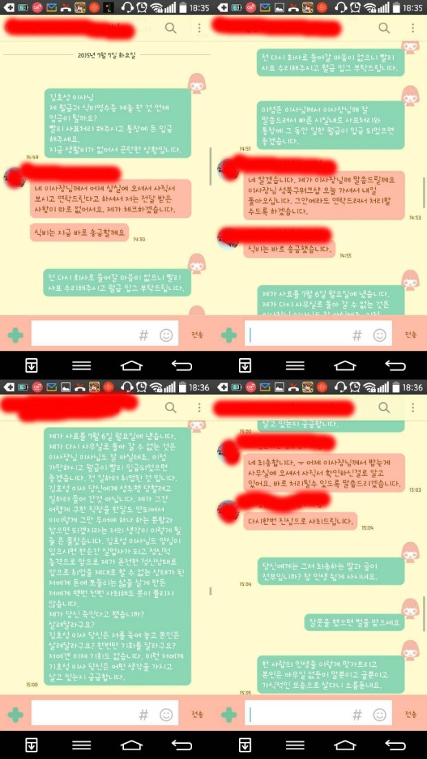 저하고 이야기한 거랑 다르게 노동부에 이야기하며 절 이상한 여자 취급하고~