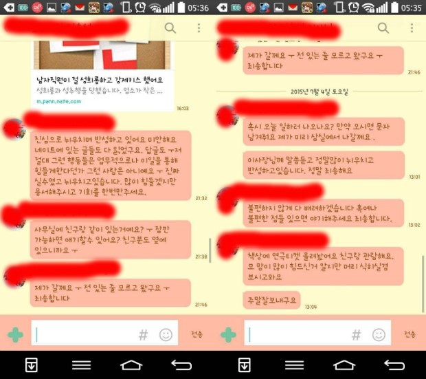 혐의가 없다구요? 씨팔 그러면 본인도 카톡이 미안하다고 간접시인 하고 있는데