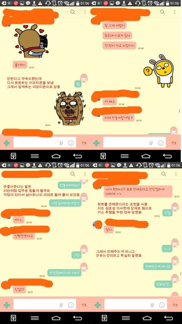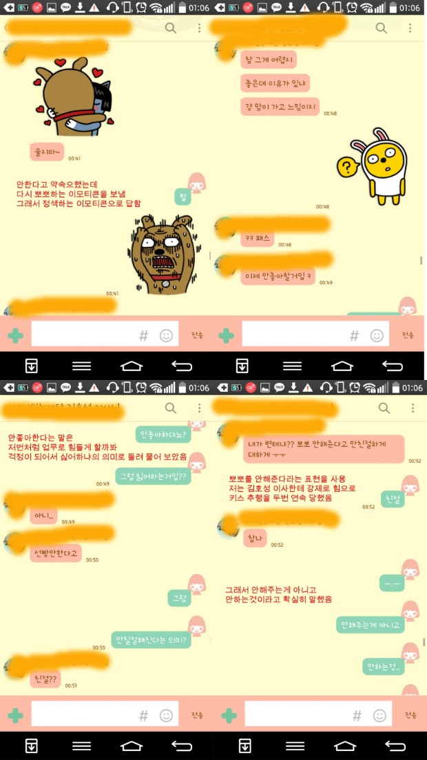 위와 같은 카톡내용들이 있는데 (사실 내용이 더 많음, 친구에게 고민하고 무섭다고 한 내용까지 등)