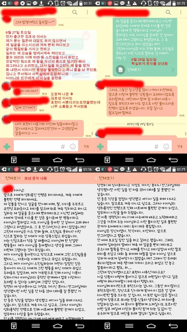 본인도 저에게 했떤 성추행과 키스사건 등 다 인정하고 사과하는 톡들이 많았는데
