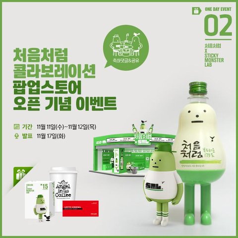 처음처럼 페이스북에 보니 팝업스토어도 있음!피규어도 있는데 그건 팝업스토어에서만 주는듯심지어 팔지도 않음..심지어 소주도 1000개 한정....