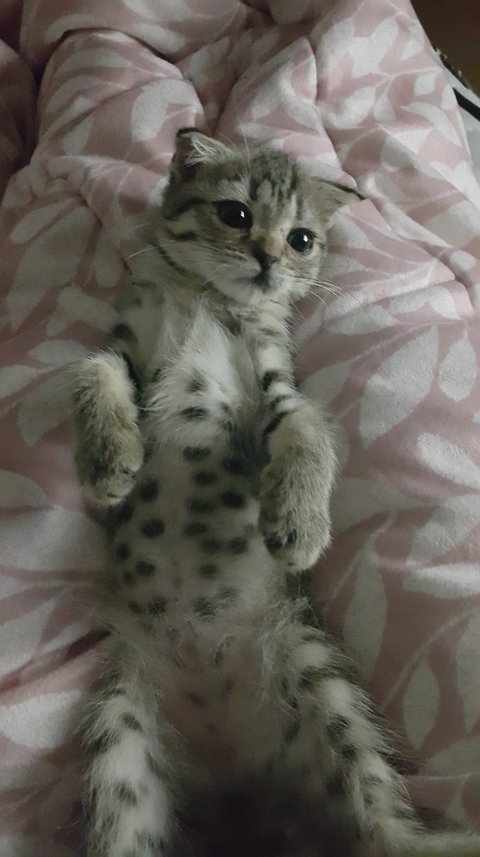 어디서 데려왔냐시길래 샵이랬더니 고개를 갸우뚱하시며 애기가 키로수가 미달이니 잘 먹이시라하시더라구요.. 지극정성으로 보살피고보살펴 한달 꼬박 병원진로받은 마지막날, 애기가 잘 먹어 체중이 정상이더라구요^^ 더불어 폴드답지않게 너무 활발하고 무늬가 브리티쉬숏에선 나올수없다하시며 뱅갈과 폴드 믹스같으시다고... 의사쌤께 듣고나니 저조차도 의구심이 들더라구요. 그래서 주위 사람들에게 물어보니