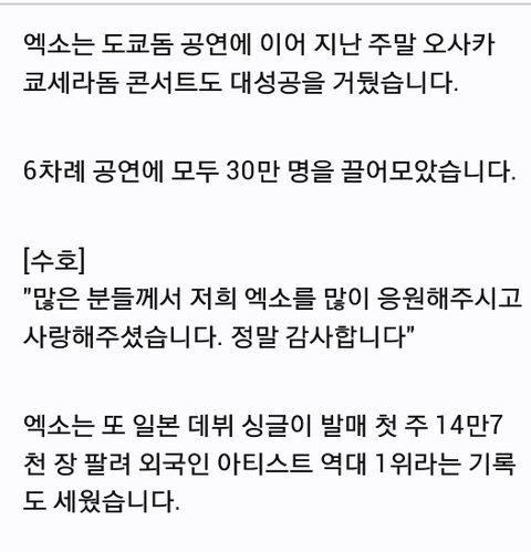 엑소, 혐한 뚫고 30만 관중..일본 열도 장악