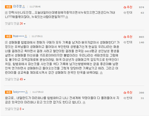 "우리도 매춘을 합법화 하고 관련 종사자들의 기록을 남겨야한다"