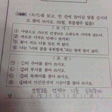반전돋는 중학교 시험문제