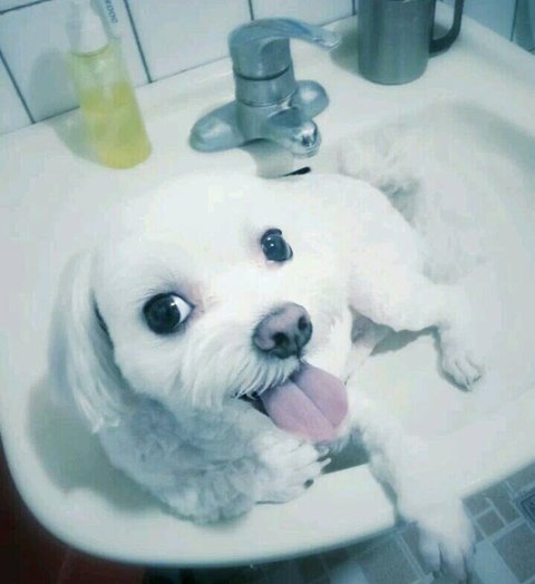 산책 후 발 씻을 때면 저렇게 세면대에 엎드려서 활짝 웃고 기다립니다 ^----^ 아이고 내 새낑!