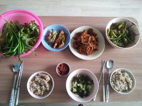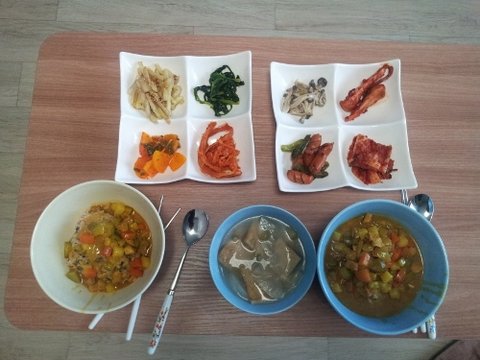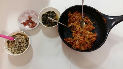 반찬은 엄마가 김치는 해주시고 나머지는 제가 했어요~