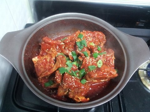 묵은지감자탕하고 남은 돼지뼈로 매콤돼지등뼈찜 했어요~~