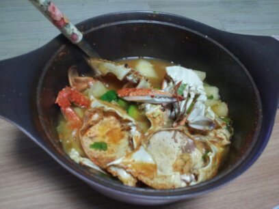 된장꽃게탕했어요~ 비쥬얼이 조금 그렇네요 냄비가 큰게 없어서....