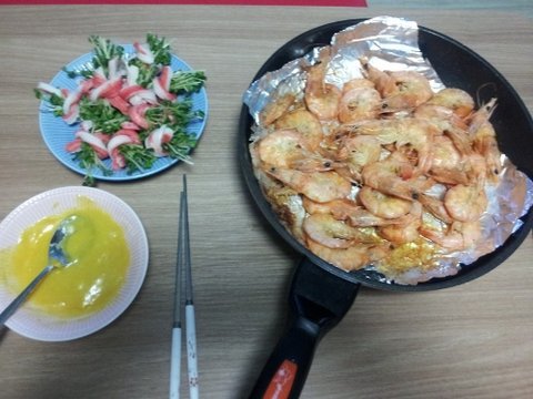 새우세일해서 새우소금구이하고 무순맛살말이해서 소스에 찍어먹었네요~~