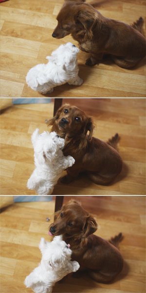 저희집 개에요. 이름은 '밤순'이구요.닥스훈트 혼종이라 허리가 좀 길고 다리가 좀 짧은편이에요.털은 완전 단모종은 아니고 장모종도 아니지만 보시다시피 항상 이런 상태구요.목에 방울목줄을 하고 있어서 움직일때마다 소리가 나요.
