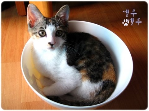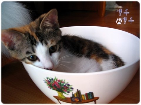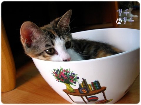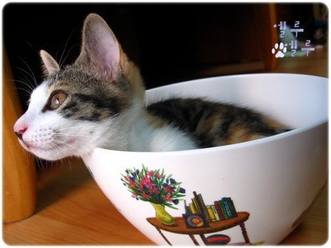큰 봉지로 파는 뻥튀기를 한 봉지 샀다.. 덜어 먹으려고 가져다 놓은 그릇에 은비가 들어가 앉았다.. 어쩜.. 딱 은비 사이즈네..^^;;