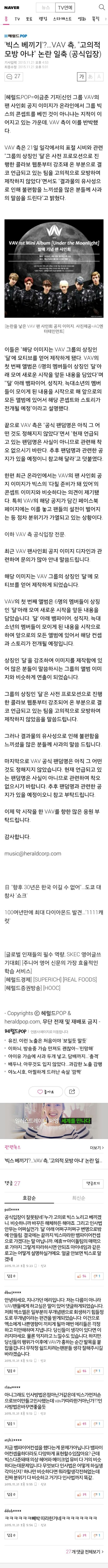 무튼간에 몇시간 전에 공식입장이라면서 vav네 회사가 올린 글 기사를 봤는데 어이가 없더라고.