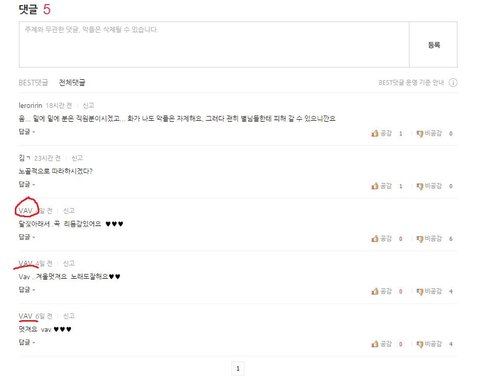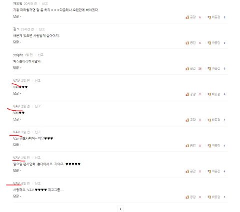 일단 내가 제일 싫어하는 인사하는 vav와 걔네 뮤비가 있는 스타캐스트에 달린 댓글(관심의 황무지였던 곳에 별빛님들의 광명이 찾아옴)