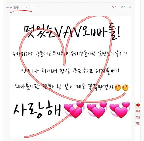 별빛, 타팬 그리고 가뭄에 콩 나듯 있지만 얘네 팬 글 다 읽어보는데 항상 빠지지 않고 졸라 열심히 등장하는 어그로 vav팬이 있었음.