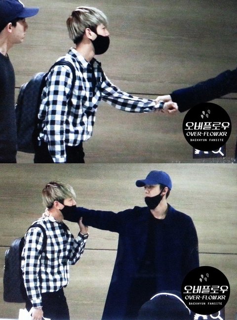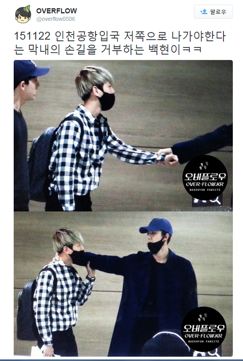 막내의 손길을 거부하는 백현이 ㅋㅋ