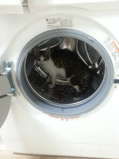 세탁기에 가끔들어가서 집사를 놀래키곤하죠