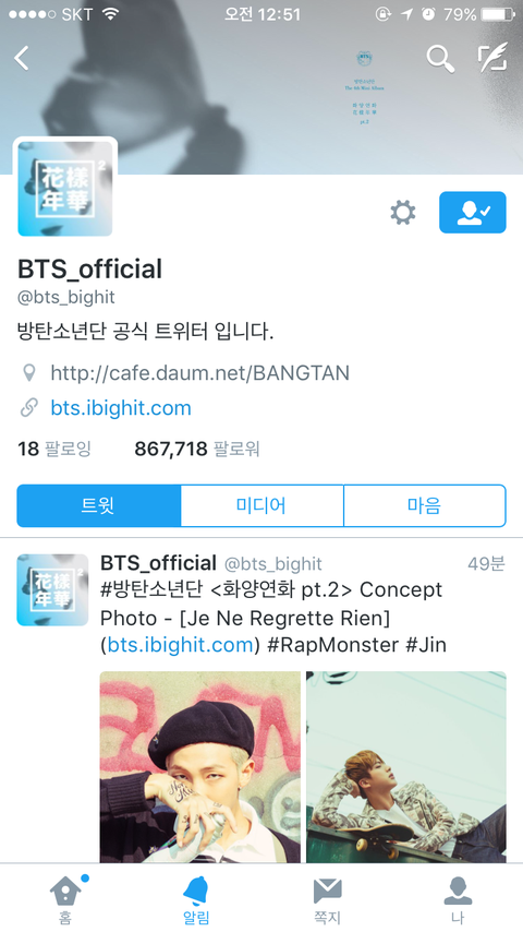 공식 트위터 색깔 바꼈다 ㅠㅠㅠ
