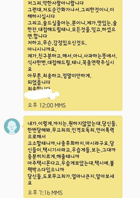 정신을 차렸는지 나중에 문자로 사고수습하려고 장문의 글이 왔고요.( 술 드시는분이니 친구분과 한잔 사드리겠다고 이해해달라고 그런내용 ㅡㅡ)