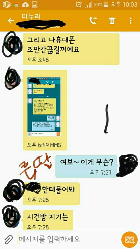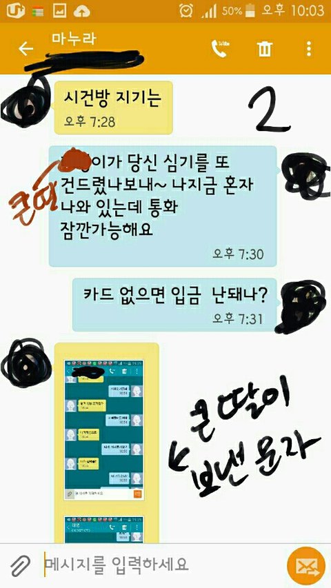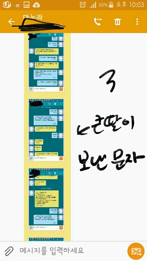 사진은 아빠랑 아줌마랑 문자한거 캡쳐예요.
