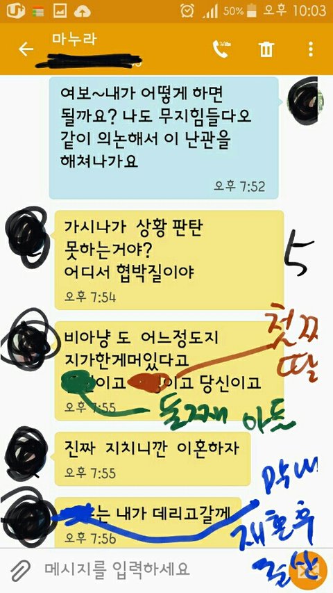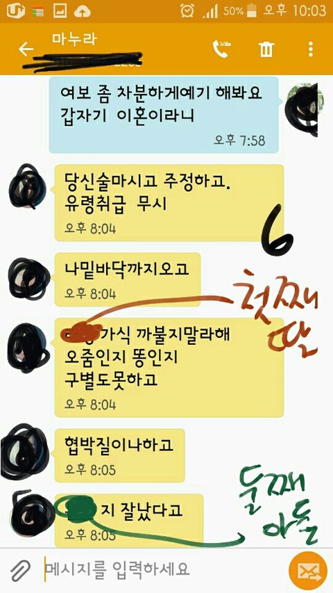 그러고 전 아줌마한테 문자를 보냇고 왜 승질이 나셨는지 미치겟습니다. 저나 동생이나 꼬박꼬박 엄마라고 불러드렸습니다. 이혼은 또 뭐고 차라리 이혼하셨으면 좋겟습니다. 일단 아빠는 아줌마한테 쩔쩔매세요. 애도 지 엄마가 왕인줄 압니다. 저 어떻게 해야 할까요?