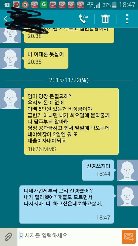그러던 어제 저한테는 연락 안하더니 아빠한테 연락해서 또 돈달라고 하더군요. 아빠는 이체시키는것도 모르세요. 그래서 제가 아빠한테 우리 지금 5만원 있다.