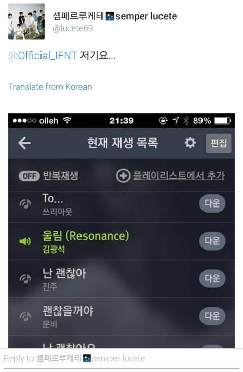 어떤홈마분이 울리미에게멘션하심