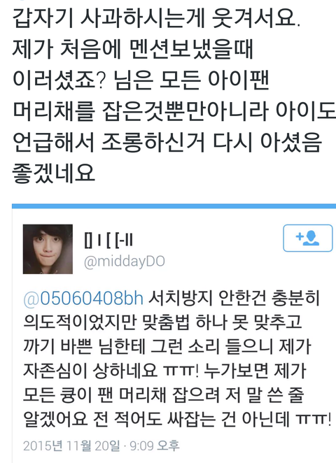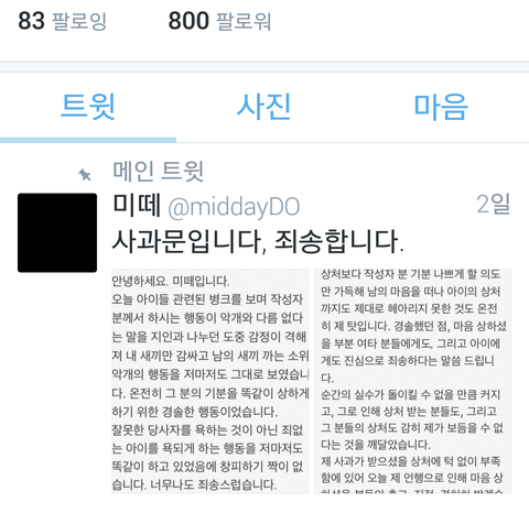디오팬 사과문까지받음