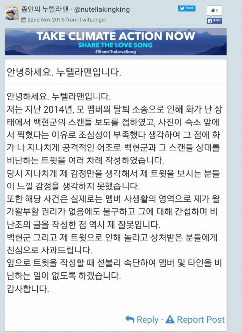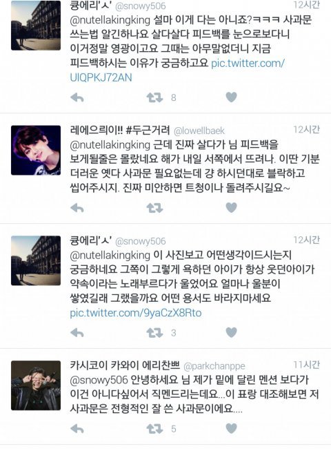 사과를 해도 받아줄 줄 모르는 이들이 어떻게 백현이 인스타 사과문은 팬들이 안 받아줬다고 뭐라할 수 있는지